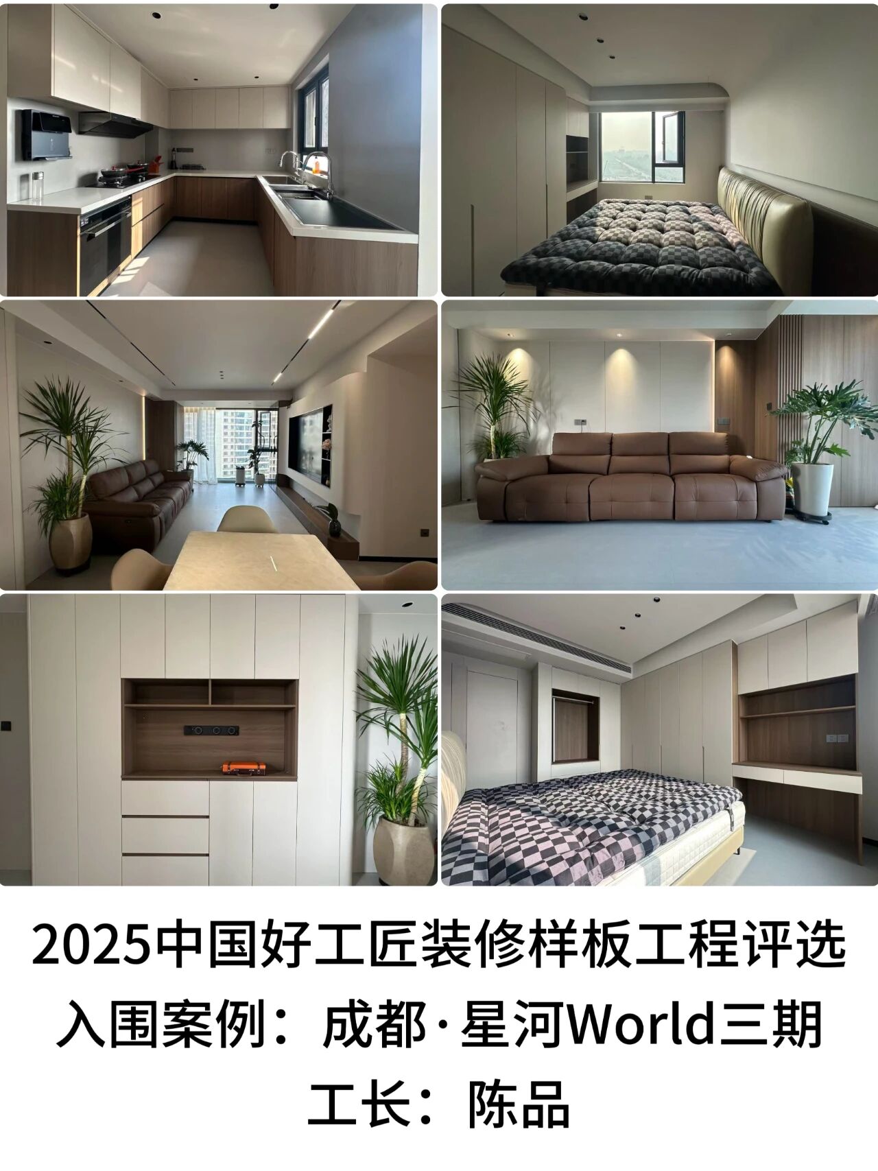 12月二期评选的入围案例,来自成都工长陈品打造的星河World三期住宅装修项目。该项目位于四川省成都市温江区星河World三期,户型为116平米全龄化设计,以“全龄适配+通透极简”为核心理念,兼顾三代同堂的居住需求与现代美学,打造功能实用、舒适纯粹的居住空间。