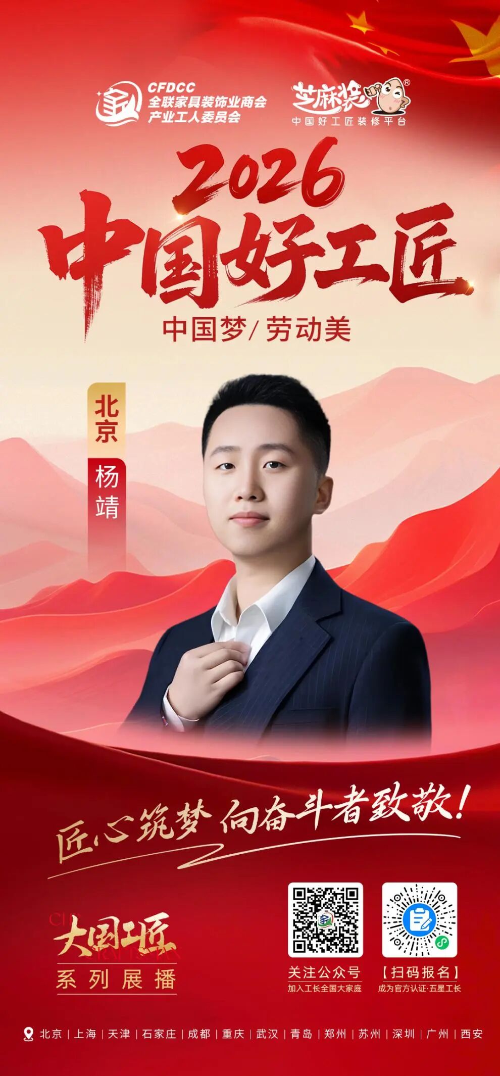95后青年工长杨靖,出身装修世家,大学毕业后深耕家装行业七载。他从B端销售跨界转型一线匠人,将现代服务思维、数字化理念与传统装修工艺深度融合,专注全屋智能与空间优化设计,以专业高效的服务、真诚守信的态度,打破传统家装刻板印象,用新锐视角诠释新时代大国工匠精神的创新内涵与青春力量。