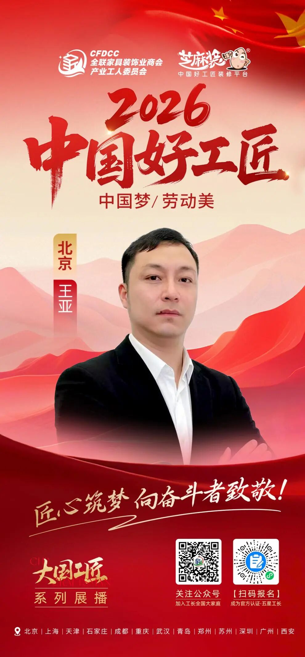 近二十载风雨兼程,王亚没有耀眼的光环,却用日复一日的坚守、精益求精的手艺、真诚暖心的服务,活成了身边人心中最靠谱的家装匠人。未来,他依旧会带着这份初心稳步前行,为更多家庭筑造温暖安心的家,让匠心,在一墙一瓦中静静发光。